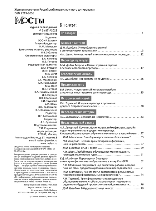 М.А. Дадян. Мерсье и Камье: странная парочка в зеркале авторского перевода. С. 17-25.